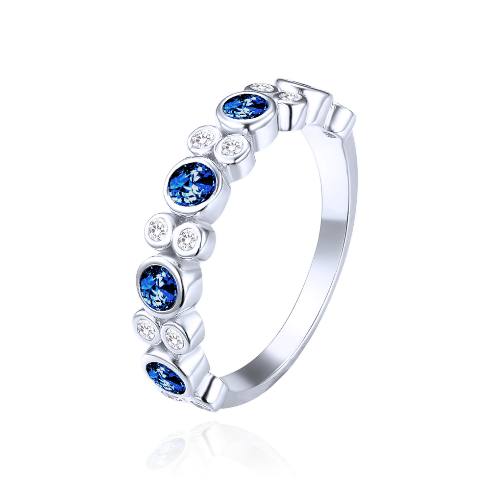 MINET Stříbrný prsten s bílými a modrými zirkony vel. 52