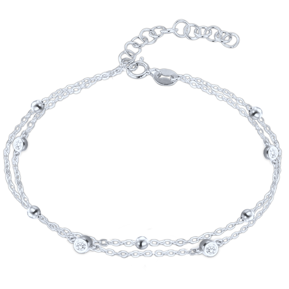 MINET Dvojitý stříbrný náramek s bílými zirkony
