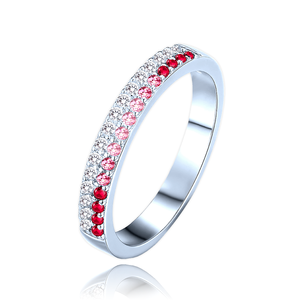 MINET Luxusní stříbrný prsten s bílými, červenými a růžovými zirkony vel. 55