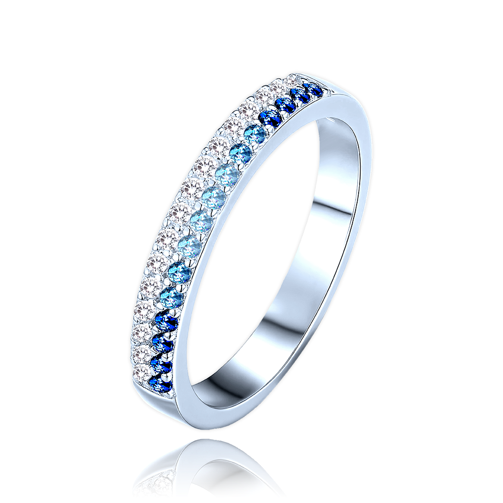 MINET Luxusní stříbrný prsten s bílými a modrými zirkony vel. 51