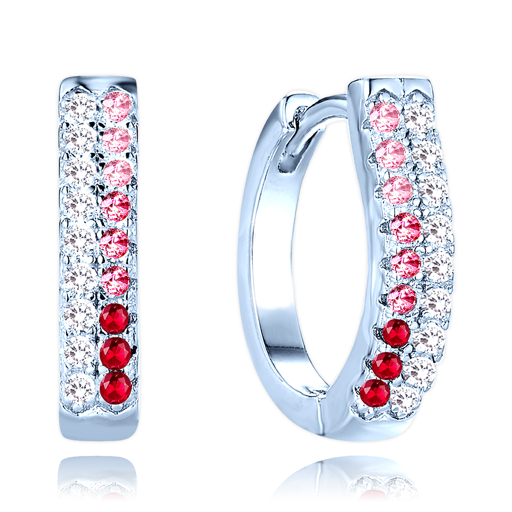 MINET Luxusní stříbrné náušnice s bílými, červenými a růžovými zirkony