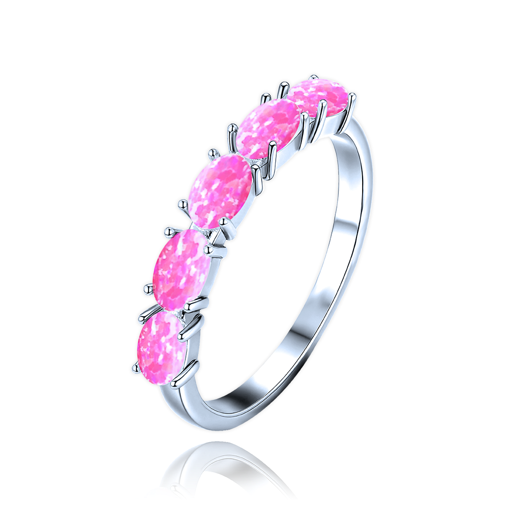MINET Stříbrný prsten s růžovými opálky vel. 58