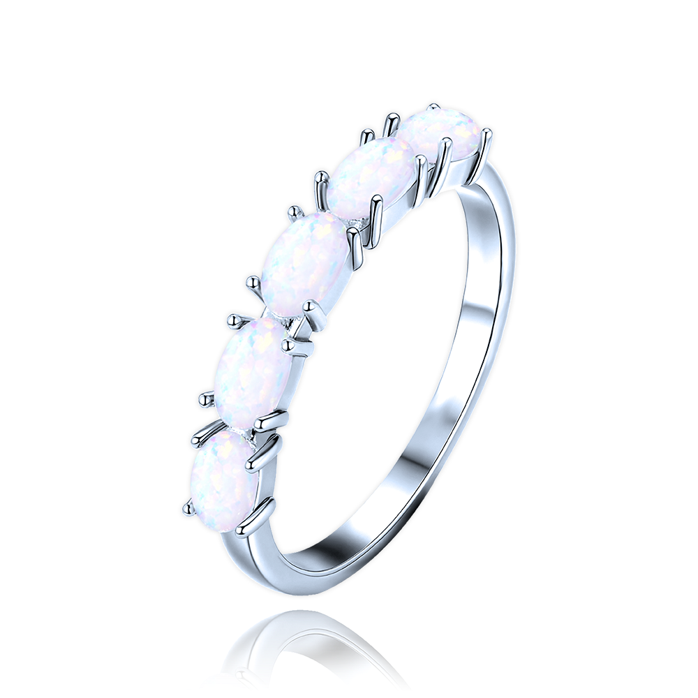 MINET Stříbrný prsten s bílými opálky vel. 60