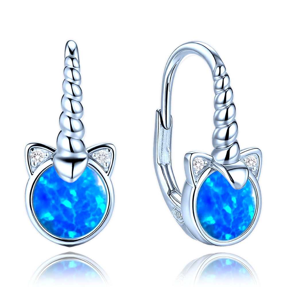 MINET Dětské stříbrné náušnice jednorožci s modrými opály a bílými zirkony
