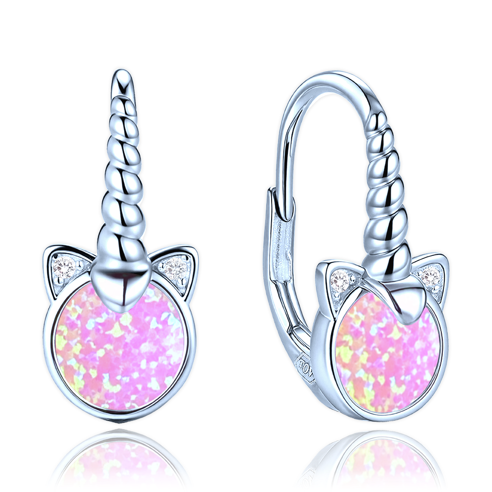 MINET Dětské stříbrné náušnice jednorožci s růžovými opály a bílými zirkony