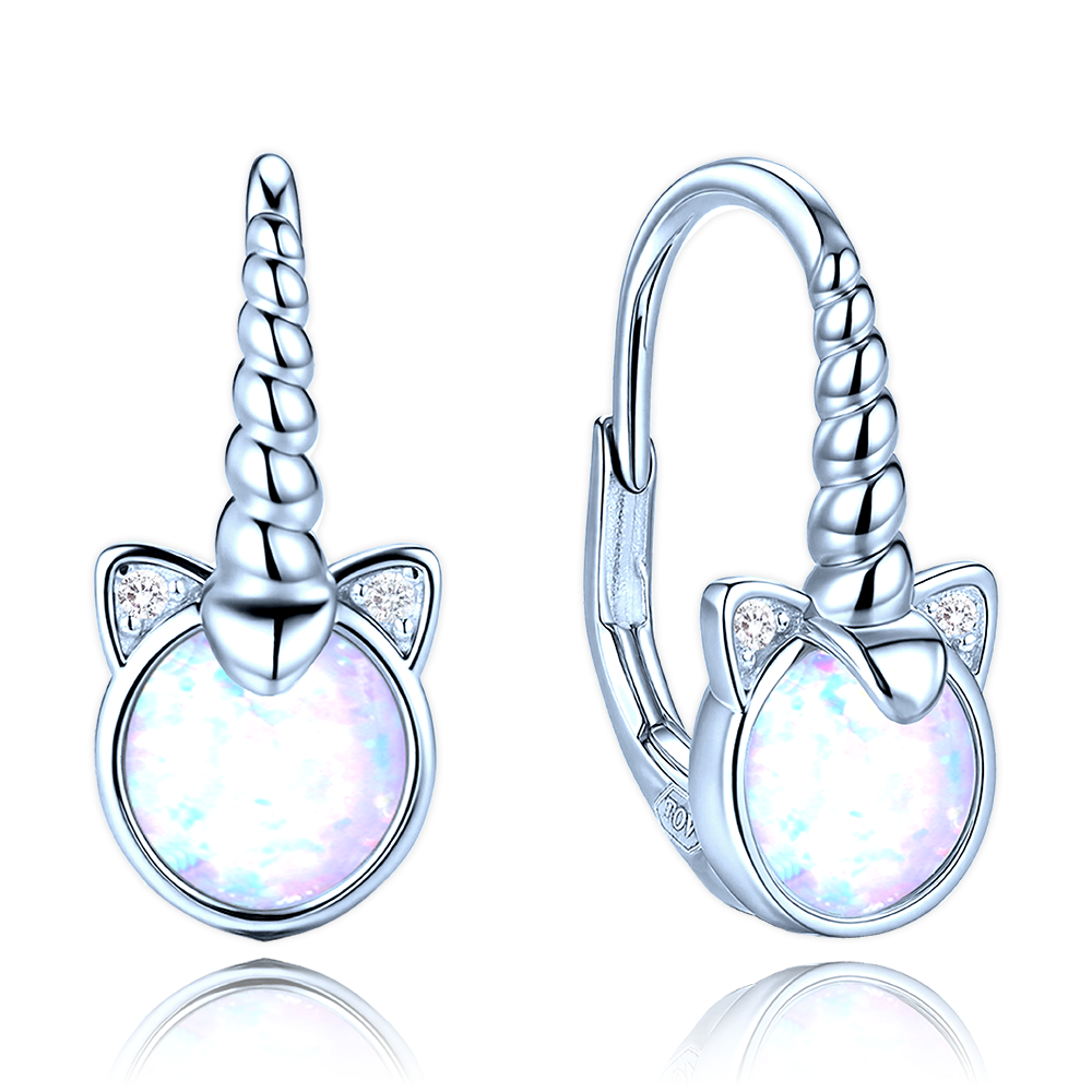MINET Dětské stříbrné náušnice jednorožci s bílými opály a bílými zirkony
