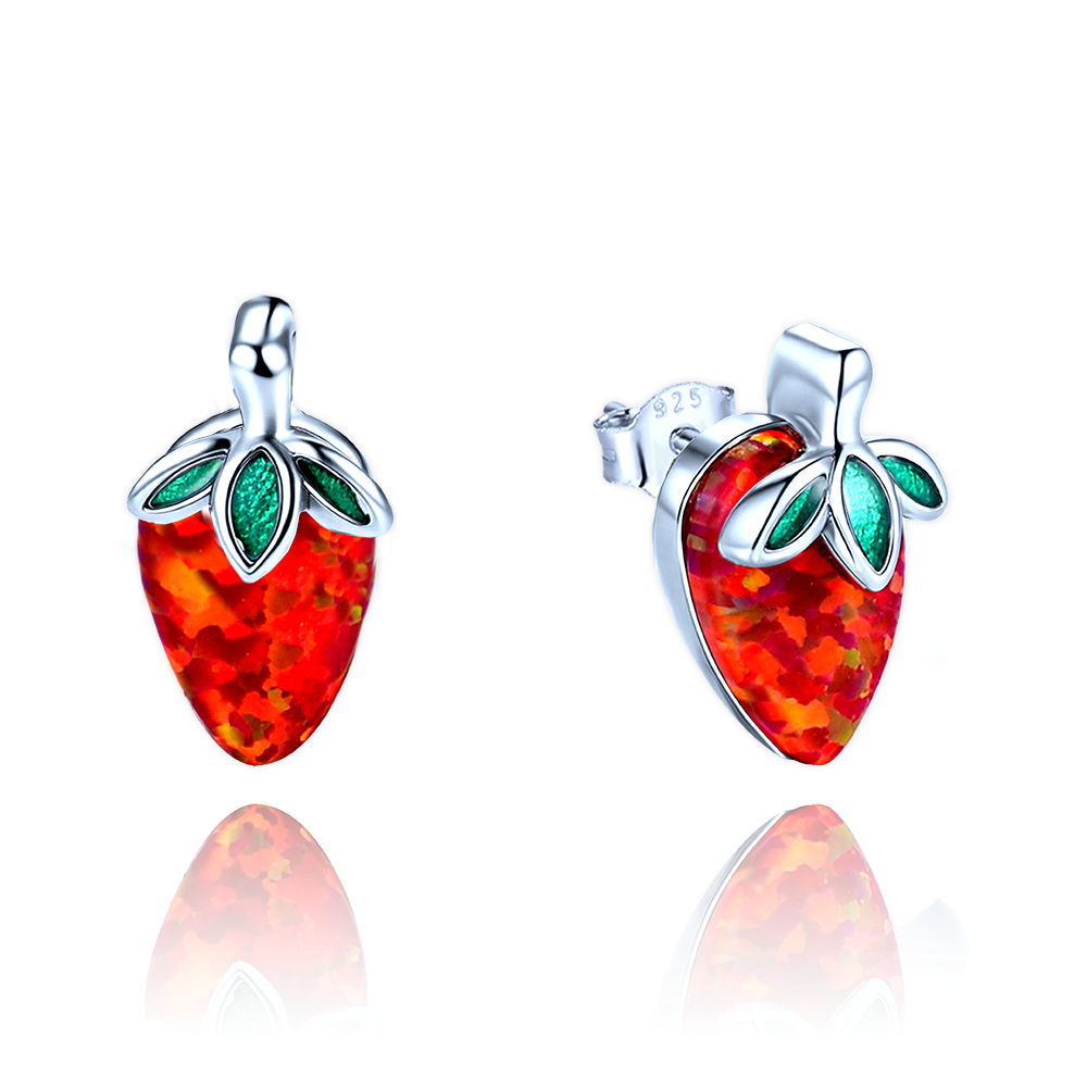 MINET Dětské stříbrné náušnice jahůdky s červeným opálem