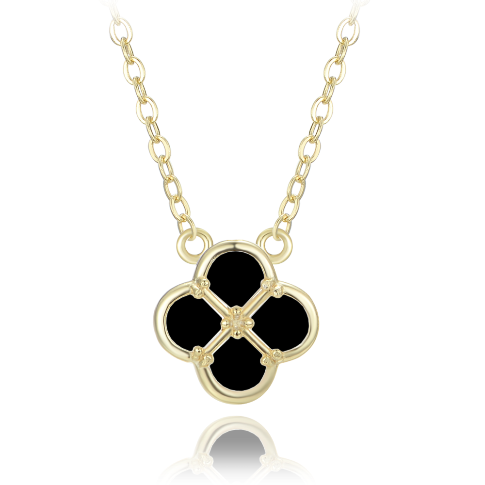 MINET Pozlacený stříbrný náhrdelník čtyřlístek s černou perletí