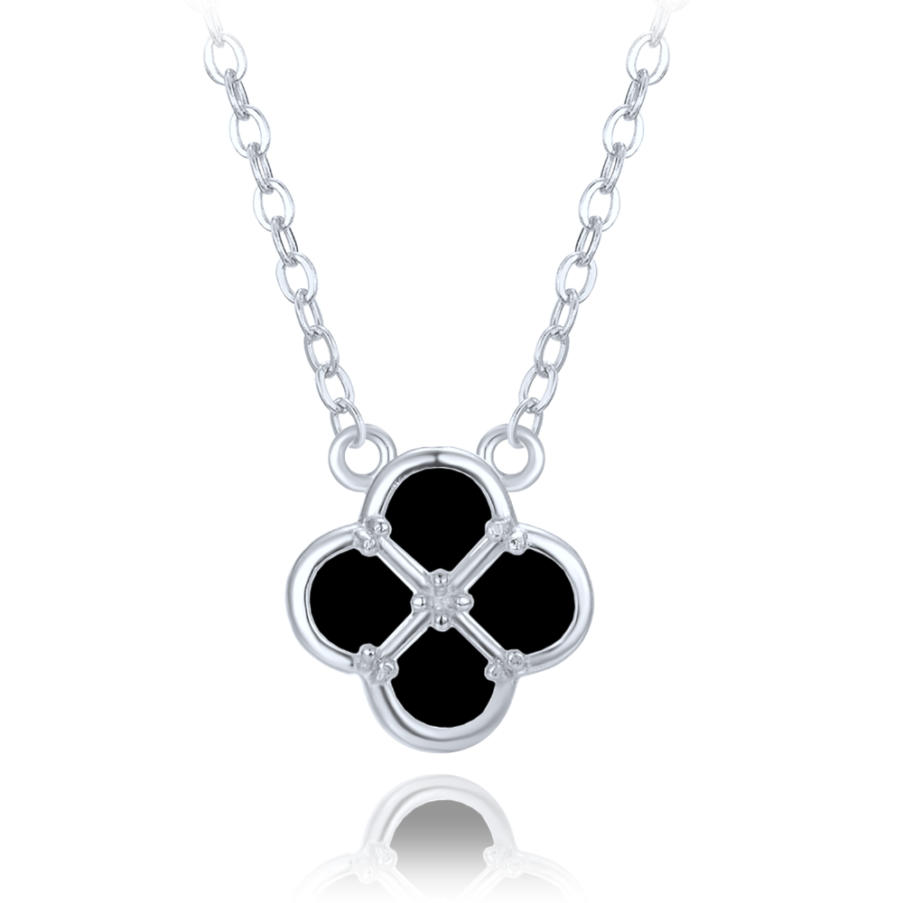MINET Stříbrný náhrdelník čtyřlístek s černou perletí