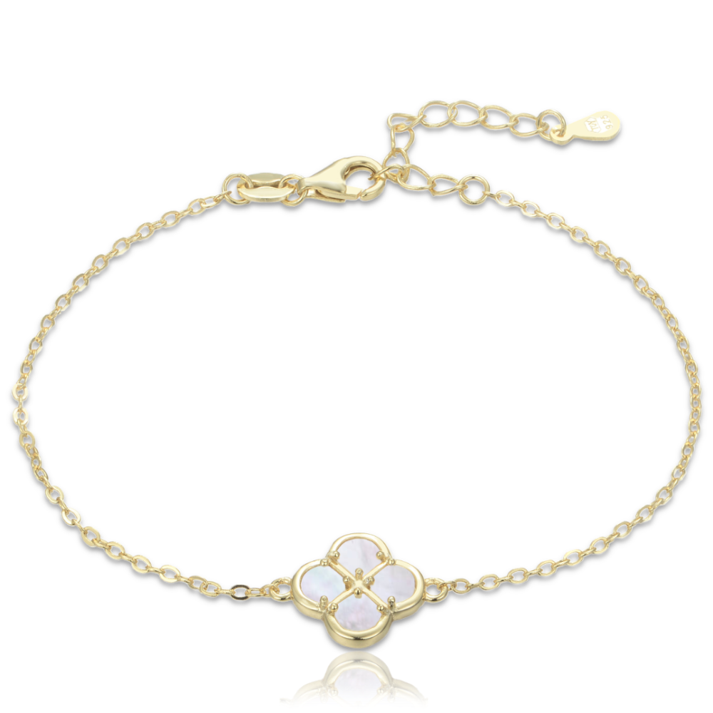 MINET Pozlacený stříbrný náramek čtyřlístek s bílou perletí