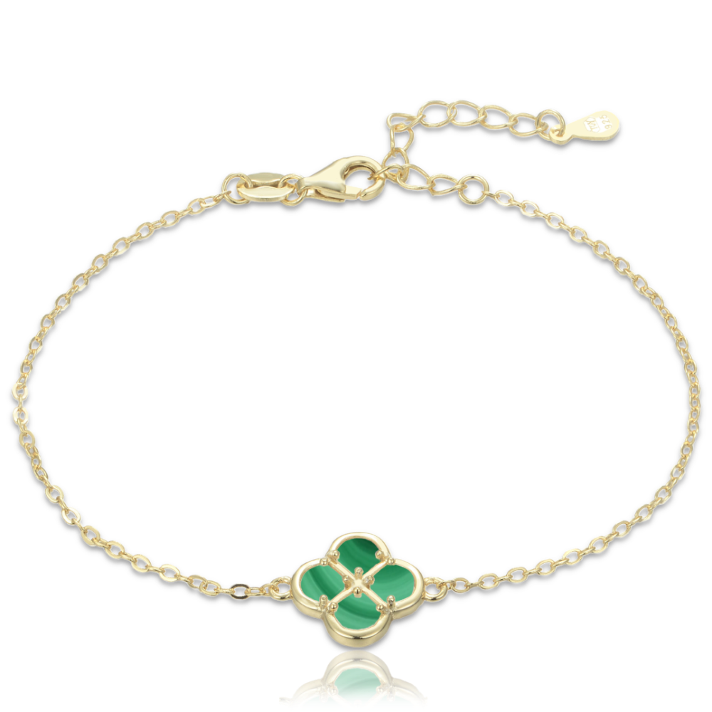 MINET Pozlacený stříbrný náramek čtyřlístek s malachitem