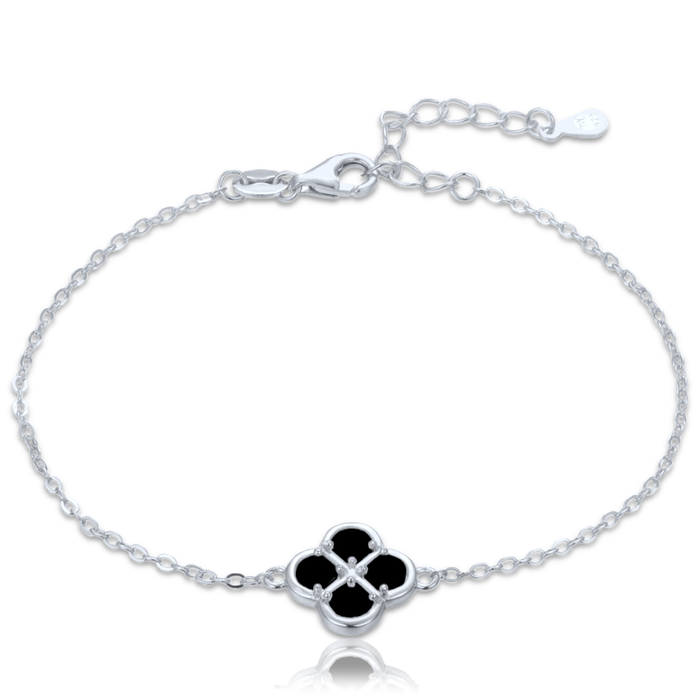 MINET Stříbrný náramek čtyřlístek s černou perletí