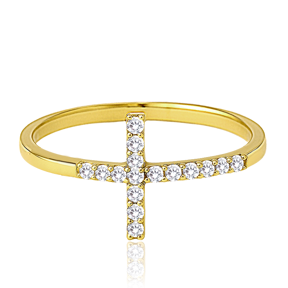 MINET Zlatý prsten křížek s bílými zirkony Au 585/1000 vel. 58