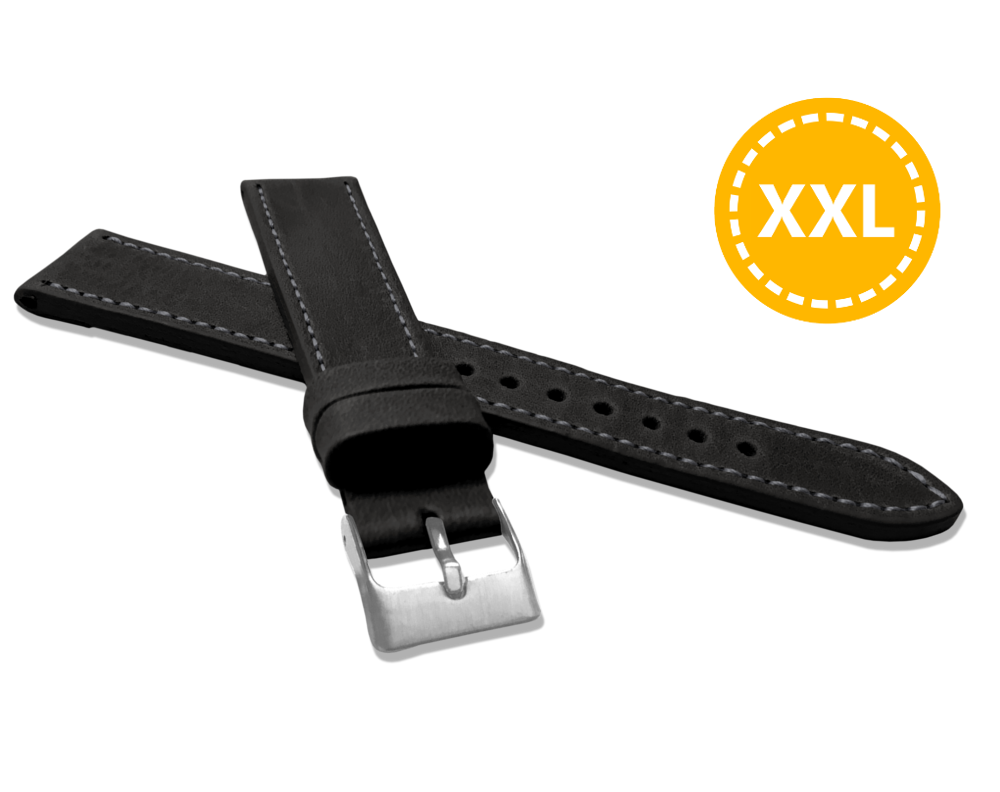LAVVU XXL Prodloužený prošitý černý řemínek SPORT z luxusní kůže Top Grain - 22 XXL