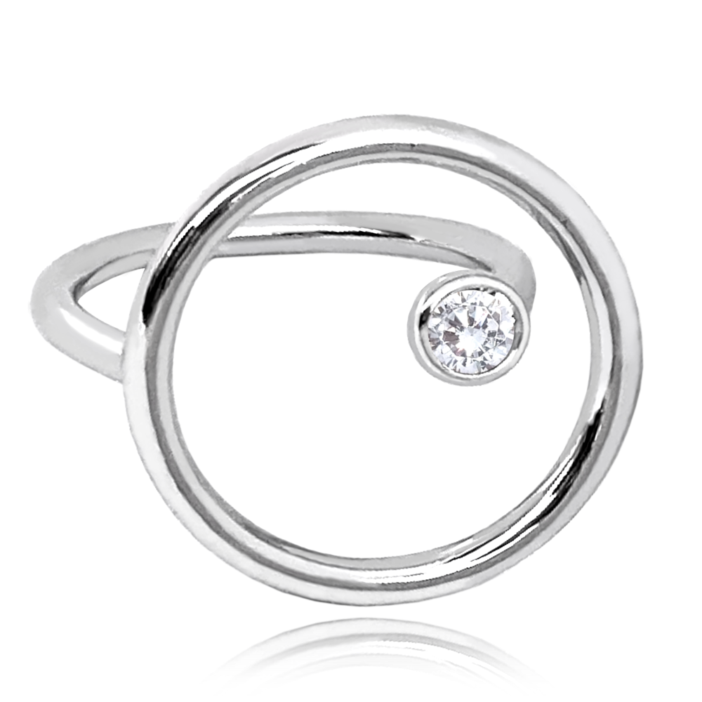 MINET Stříbrný prsten otevřený KROUŽEK se zirkonem vel. 62