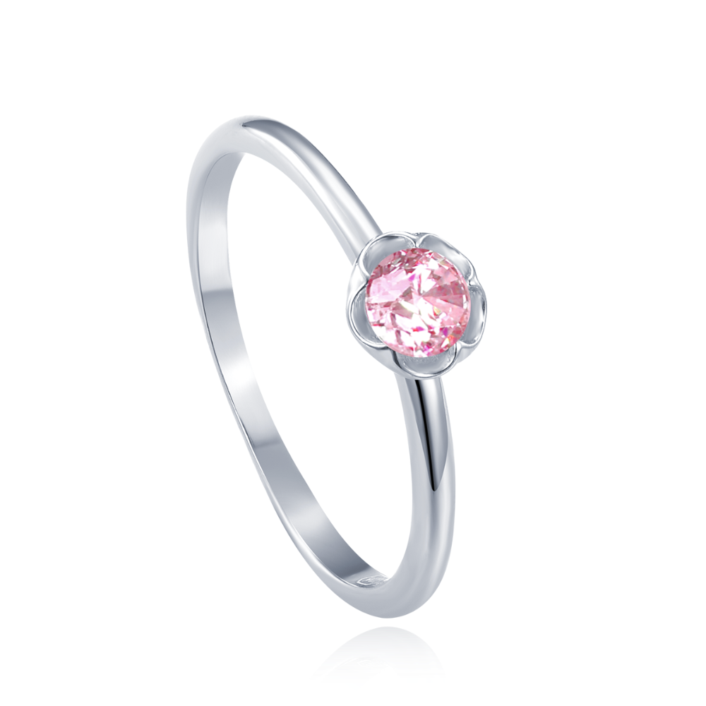 MINET Dětský stříbrný prsten kytička s růžovým zirkonem vel. 54